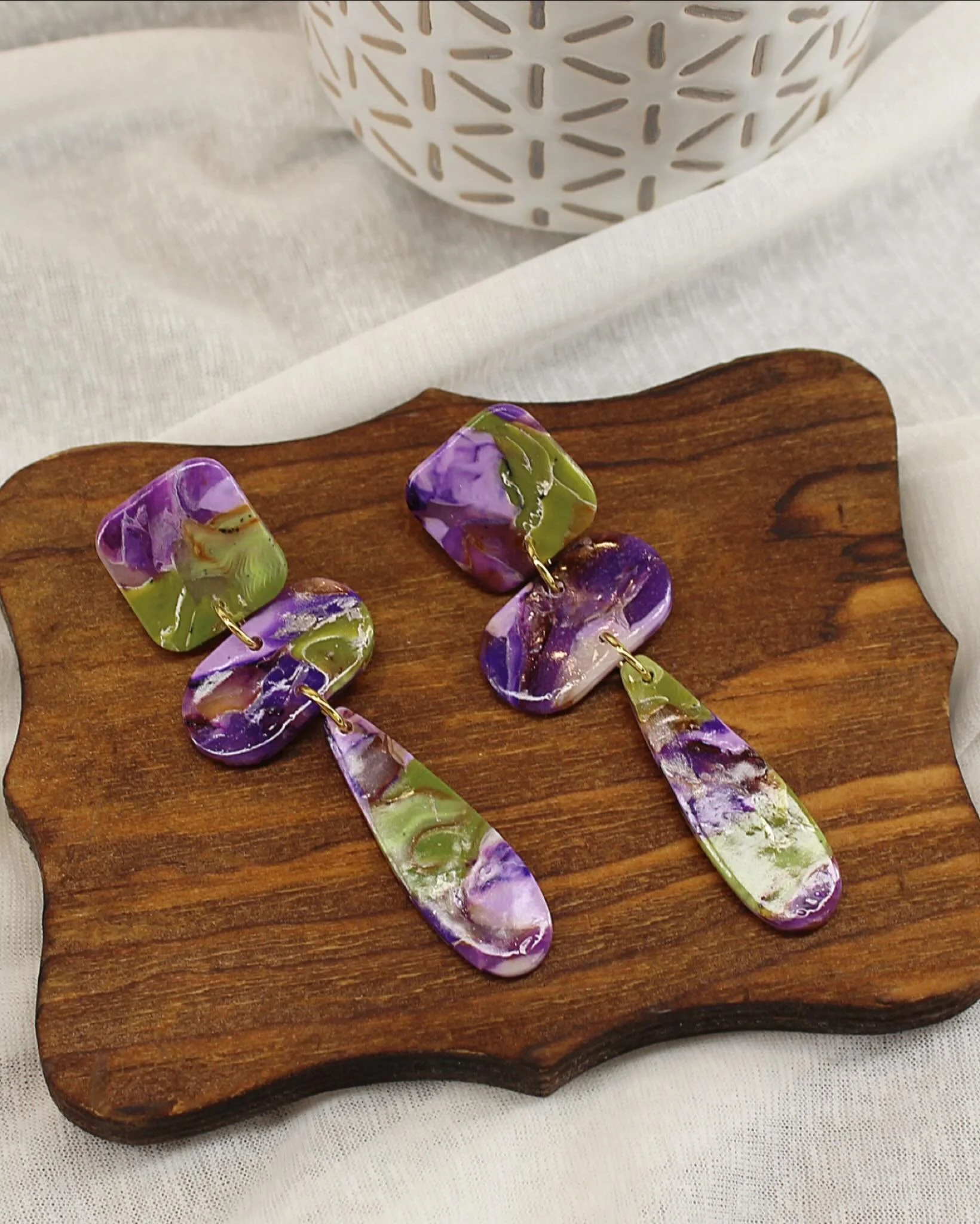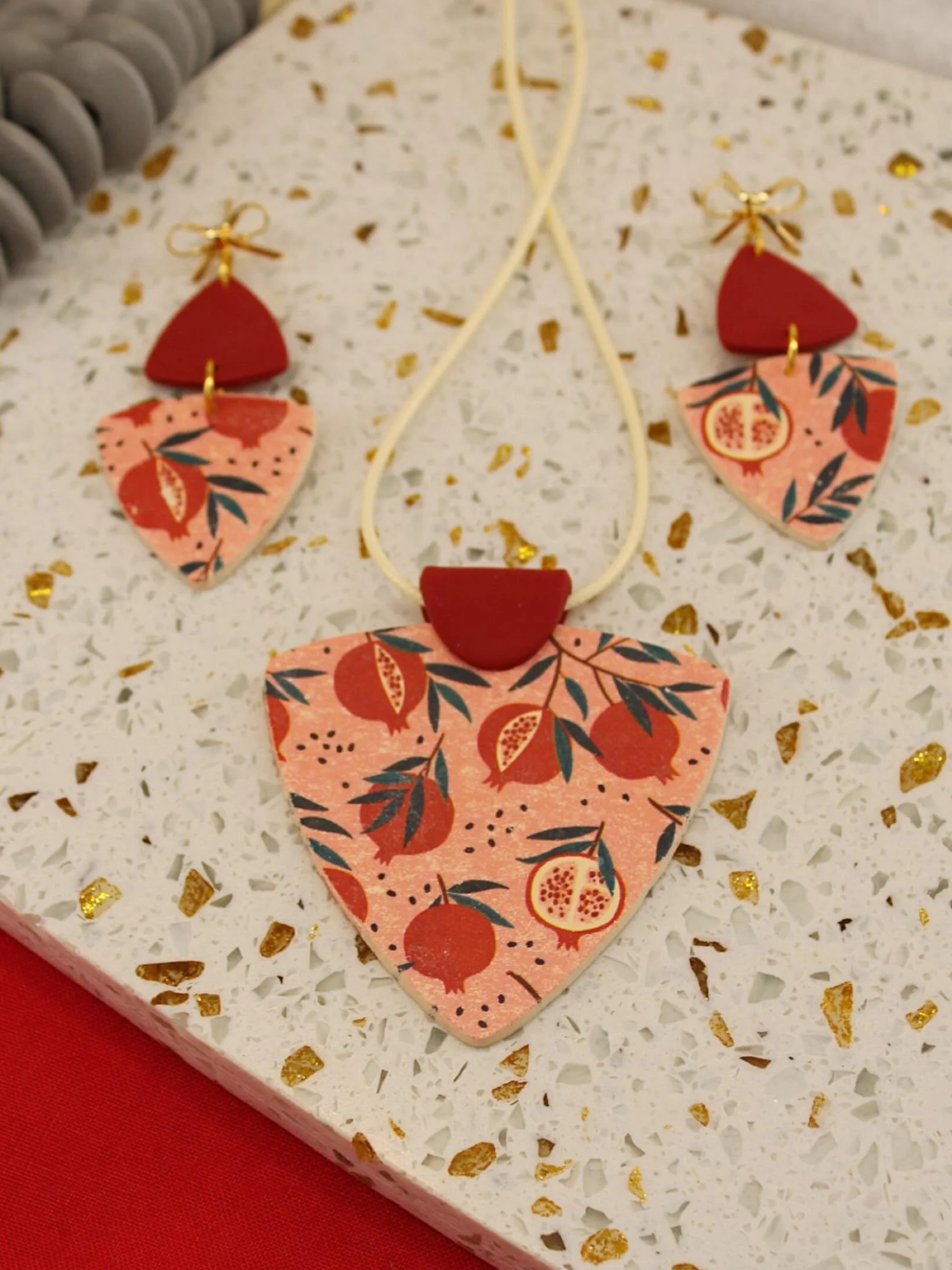 Polymer clay jewelry handmade in small batches.